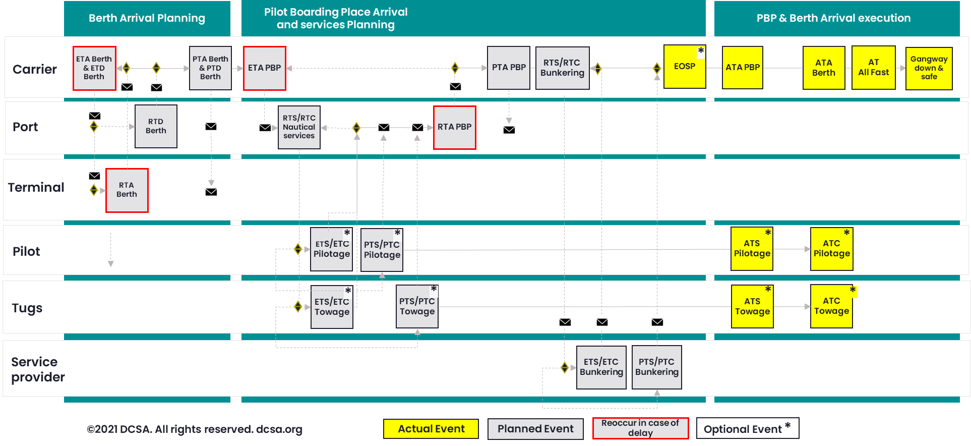 Some events, specified in this document, do not need to follow the E-R-P-A pattern, as they are informative and reflect actuals only (e.g., vessel readiness for cargo operations).