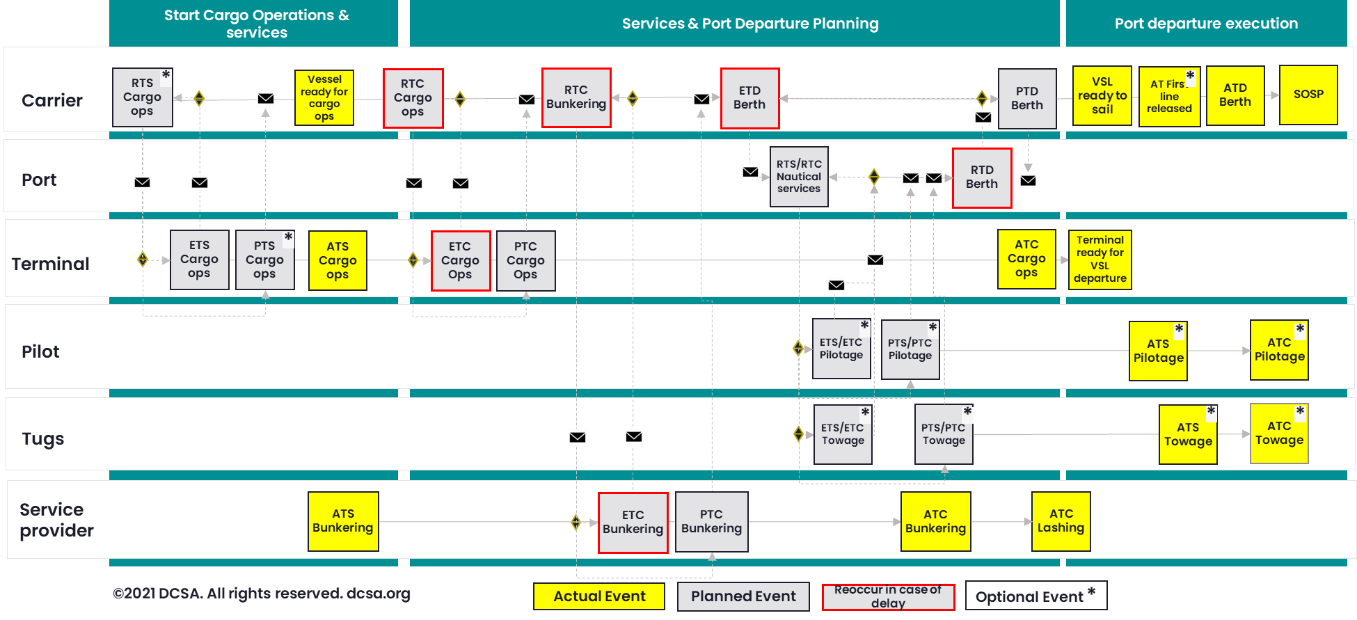 The foundation for creating operational transparency is to express event timestamps using a common language and definitions. The definitions for the timestamps of the events and their negotiation process, where applicable, outlined in this document are aligned with IMO terminology (Please refer to the External References section below for further information).