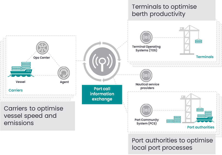 The DCSA Port Call Interface Standard aims to simplify and standardize the exchange of operational information between carriers, terminals, port authorities, and service providers, to orchestrate and optimize port calls.