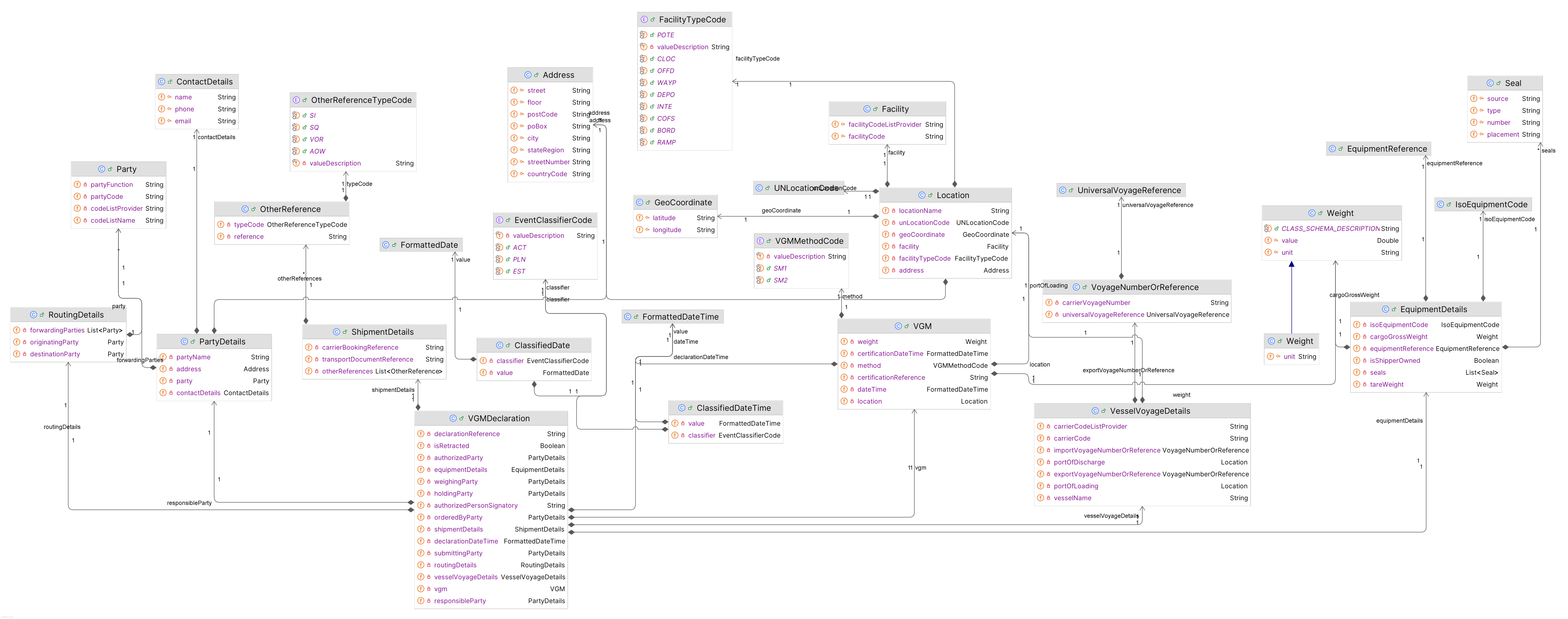 This section of the DCSA VGM standard contains the subset of the Java information model that is relevant to the VGM standard: